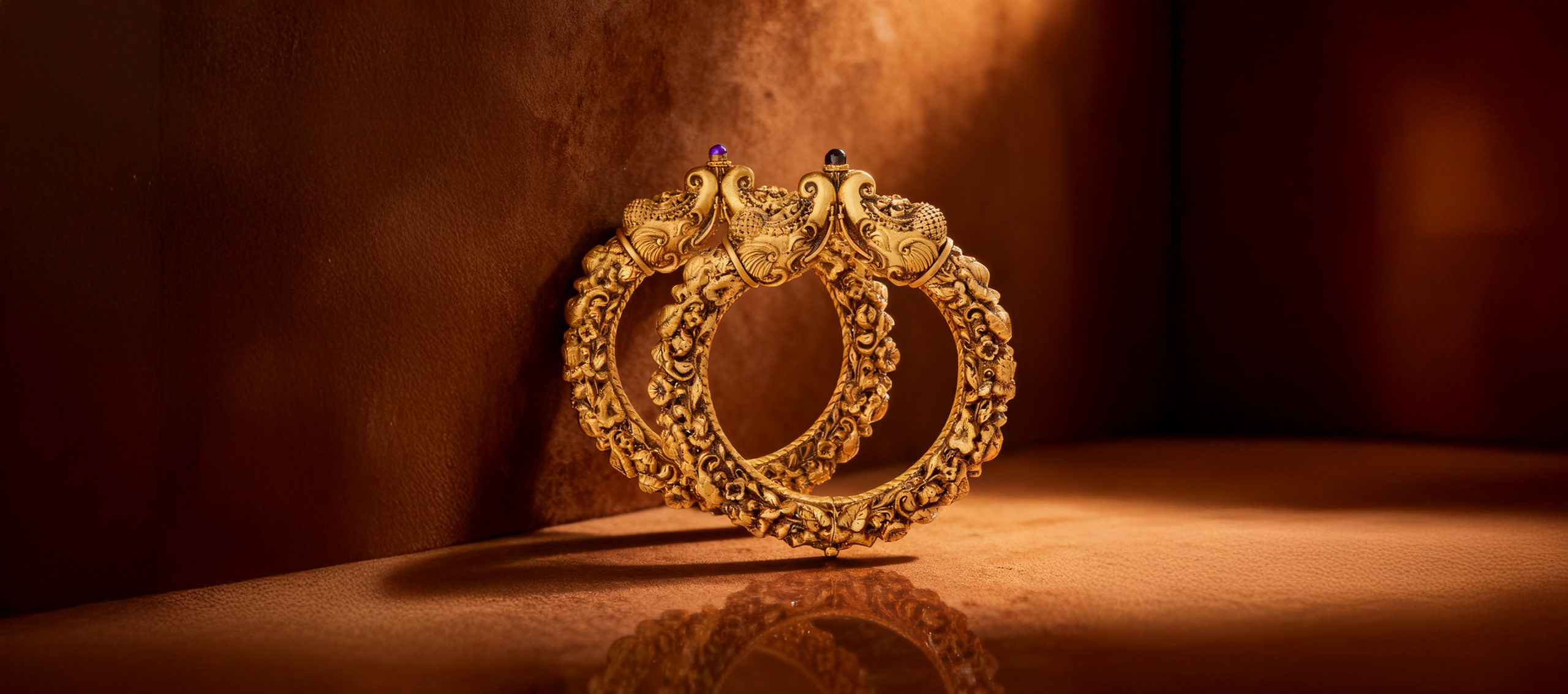 Intricate bangles featuring artisanal detailing, showcasing traditional craftsmanship at its finest. These designs embody cultural heritage while adding a glowing statement of sophistication to modern wear.