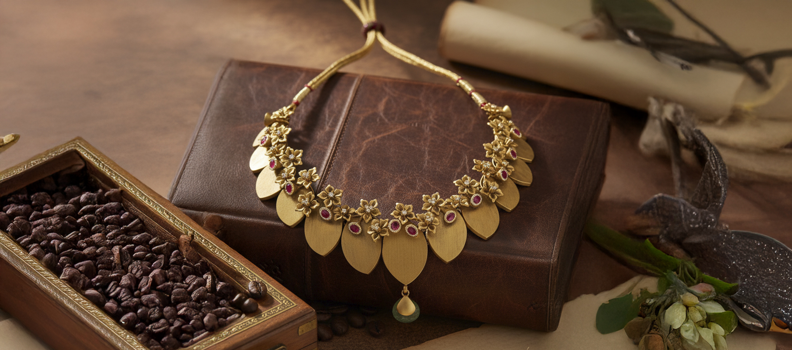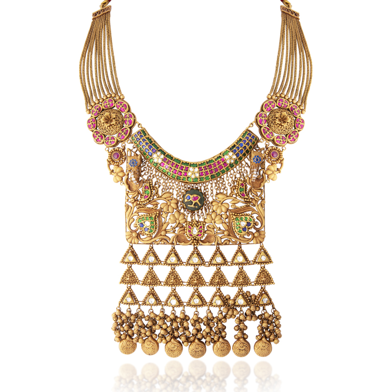 Richly detailed necklaces that are bright and intricate, blending heritage with modern luxury. Each piece is a testament to timeless artistry, meant to be worn both as a statement and an heirloom.