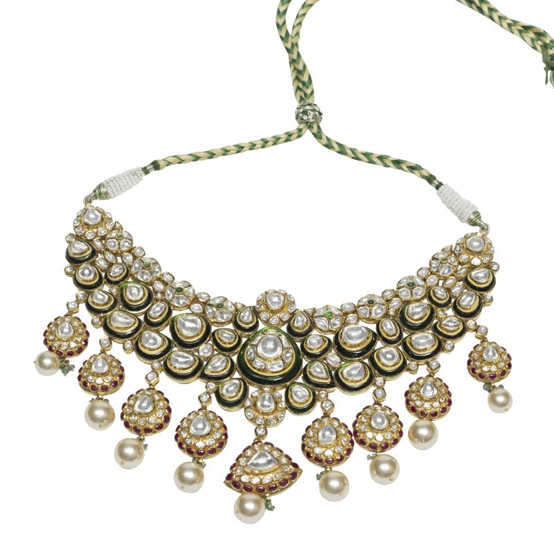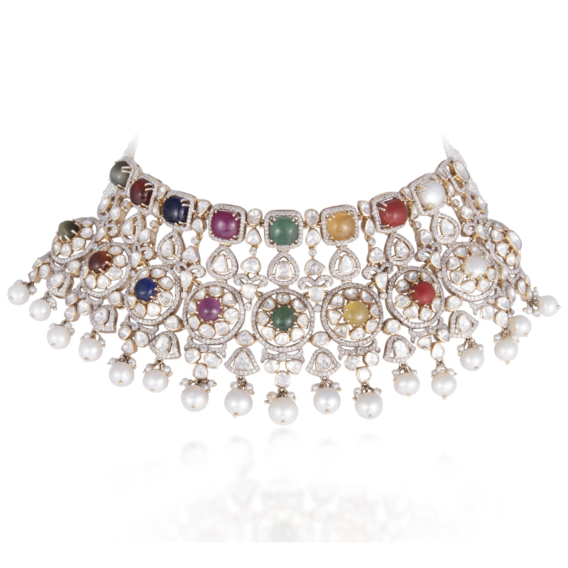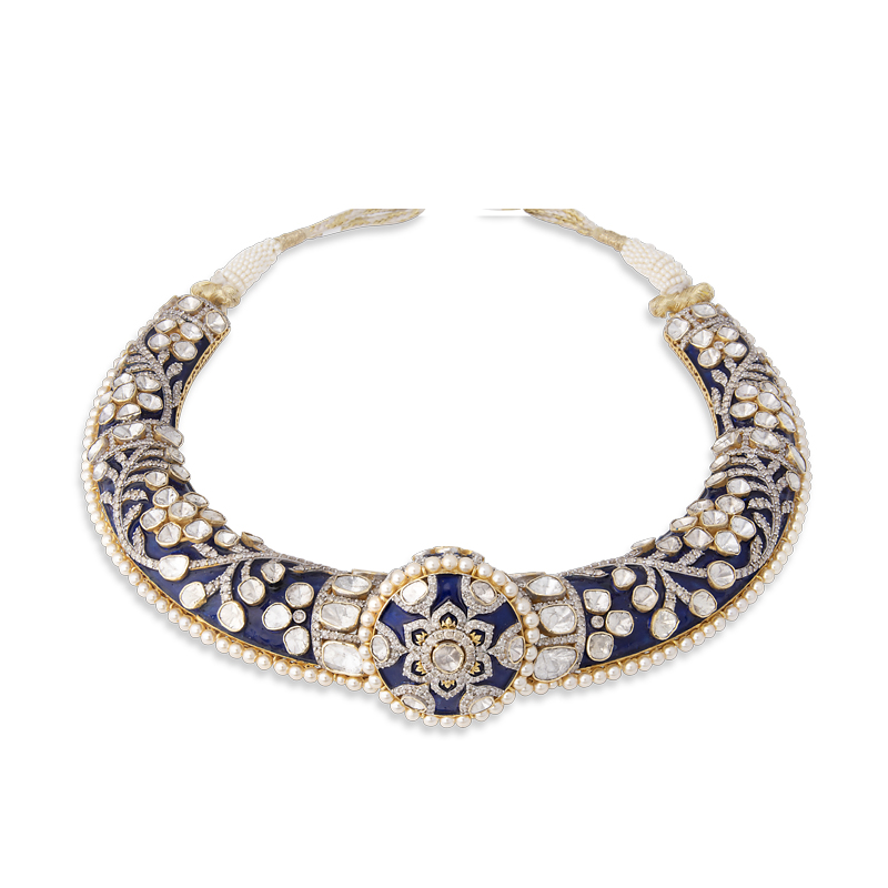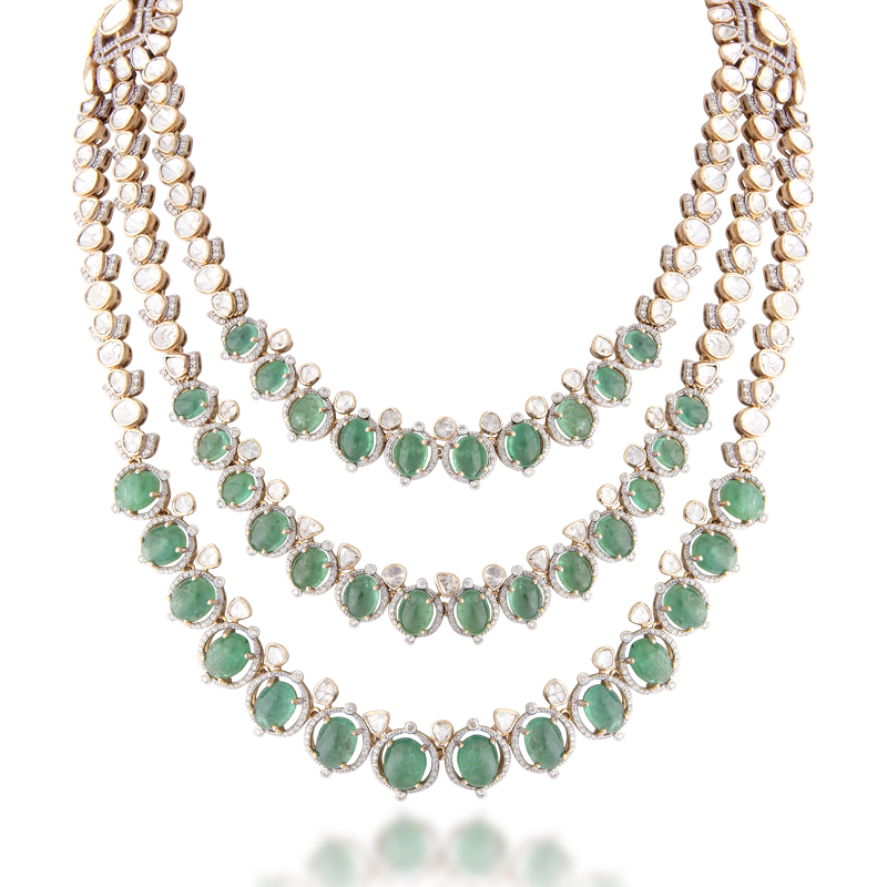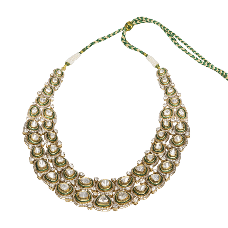 Majestic necklaces with intricate craftsmanship, bright and inspired by heritage. Each piece reflects regal artistry, combining uncut diamonds with elaborate details, radiating modern sophistication.